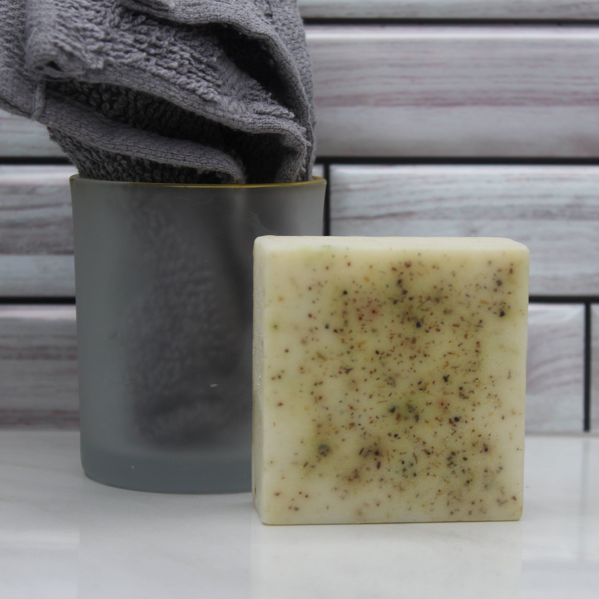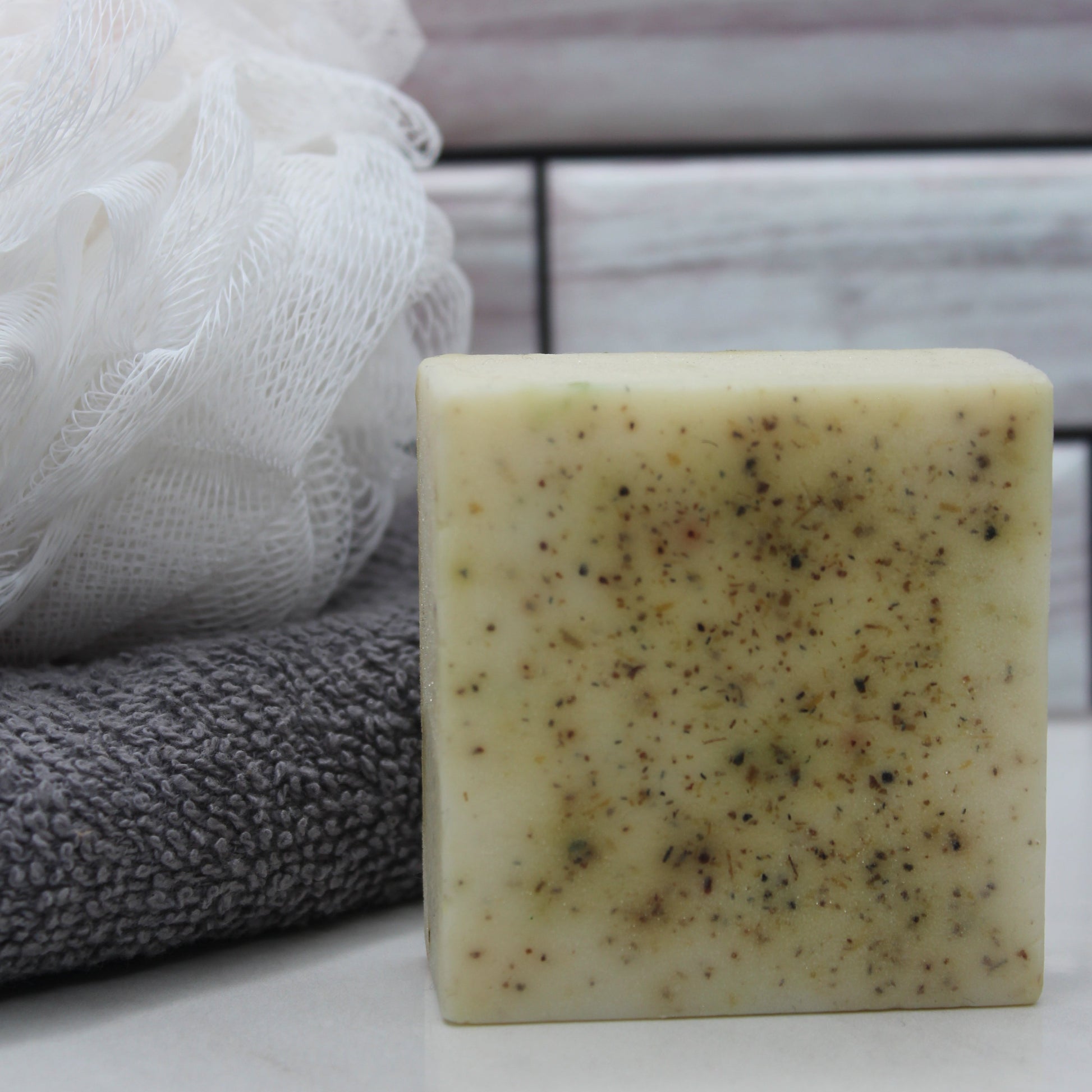Ingredients: Shea Butter Soap Base, Coconut Oil, Palm Oil, Safflower Oil, Jamaican Black Castor Oil, Organic Raw Honey, Valerian Root Extract, Passionflower Plant Extract, Organic Licorice Root, Organic Spearmint Leaf, Organic Chamomile Flower, Organic Skullcap Leaf, Cardamon Pod, Organic Cinnamon Bark, Organic St. John's Wort Leaf and Flower, Organic Rose Hip, Organic Raspberry Leaf, Stevia Leaf, Organic Lavender, and Honey Almond Fragrance. 5 oz bar